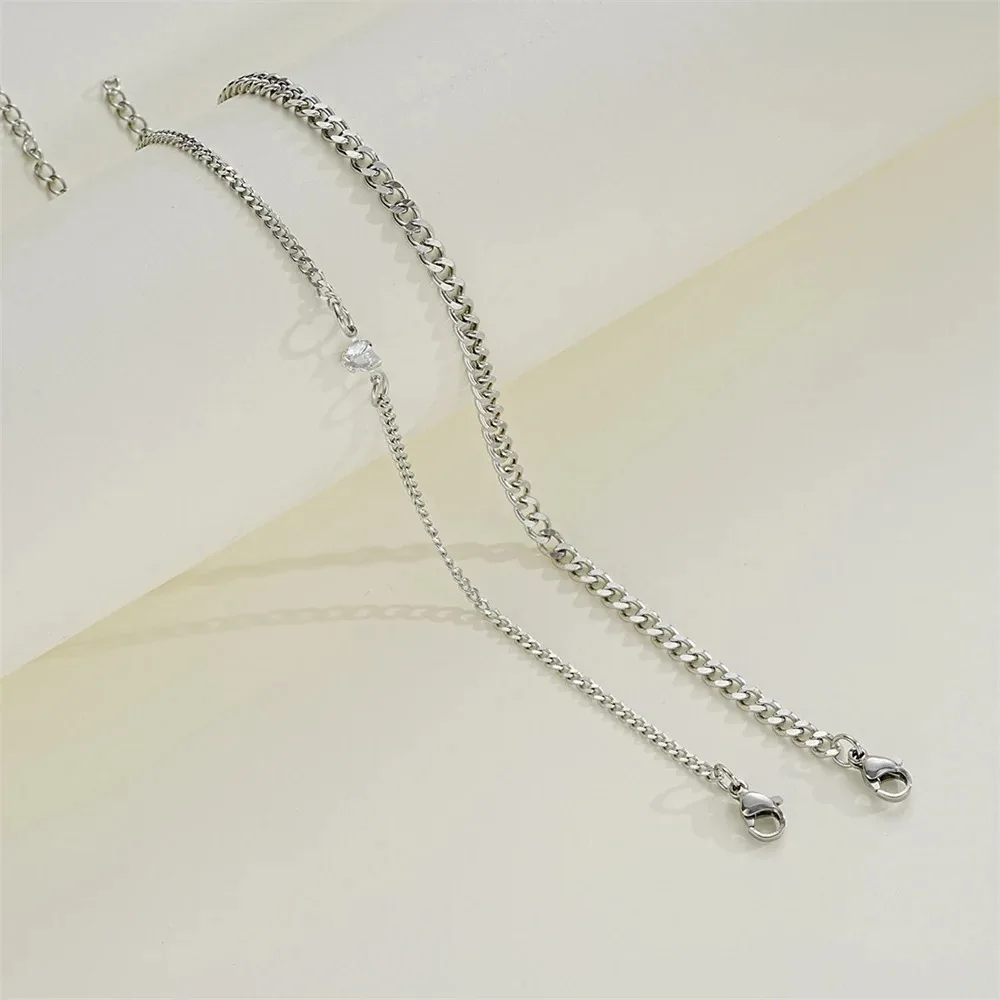 2PCS Simple Fashion Stainless Steel Bracelet Set for Couple Unisex Women Men Lover Crystal Heart Silvery Chain Bracelets Jewelry